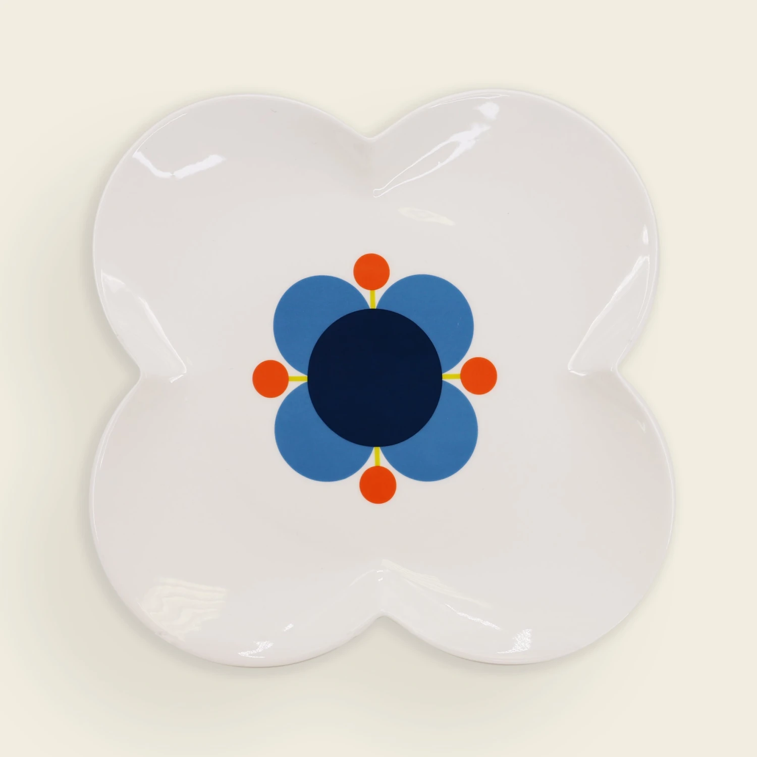 Our new flower shaped platter is beautifully printed with our Atomic Flower print in blues and pops of red. The ideal centre piece