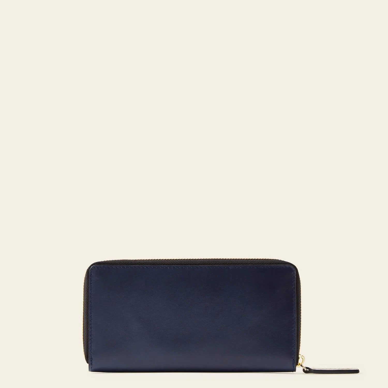 - Internal zip pocket divider, eight card slots, two long slip pockets (for notes and receipts)