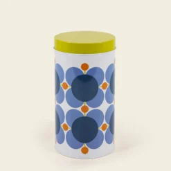 On a mission to brighten your kitchen, Orla Kiely has designed a new set of 3 nesting canister tins. Decorated with our new Atomic Flower print in complimentary blues, pinks, and yellows. Perfect for storing teas, coffee and whatever suits your needs.